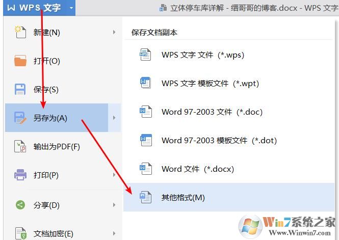 2、直接點(diǎn)擊WPS左上角,選擇另存為,再選擇其他格式。