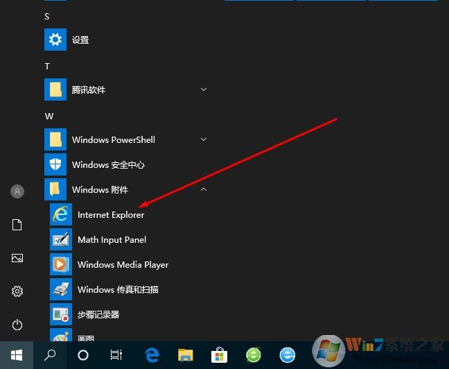 我們可以在開始菜單——Windows附件中找到IE瀏覽器,如下圖