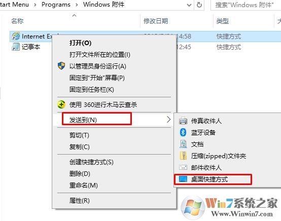 右鍵點(diǎn)擊internet explorer圖標(biāo),右鍵點(diǎn)擊發(fā)送到桌面快捷方式。