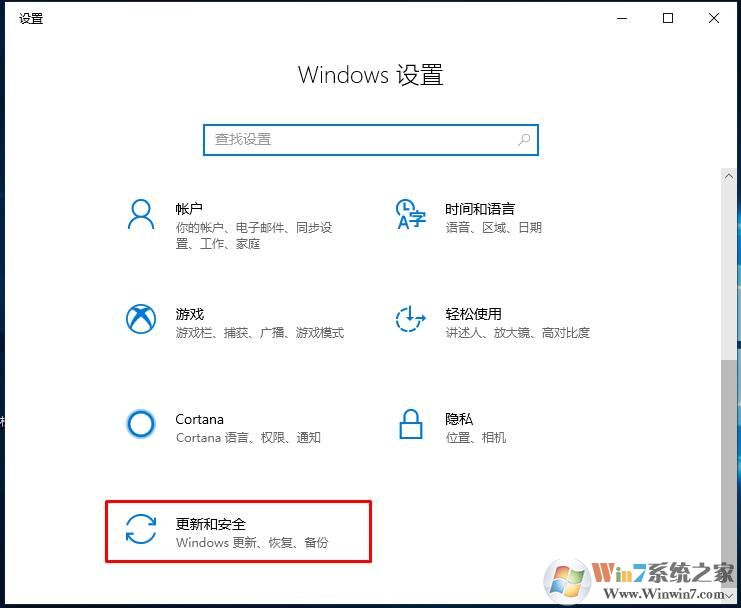 2、接下來在設(shè)置中,點擊【更新和安全】選項,如下圖