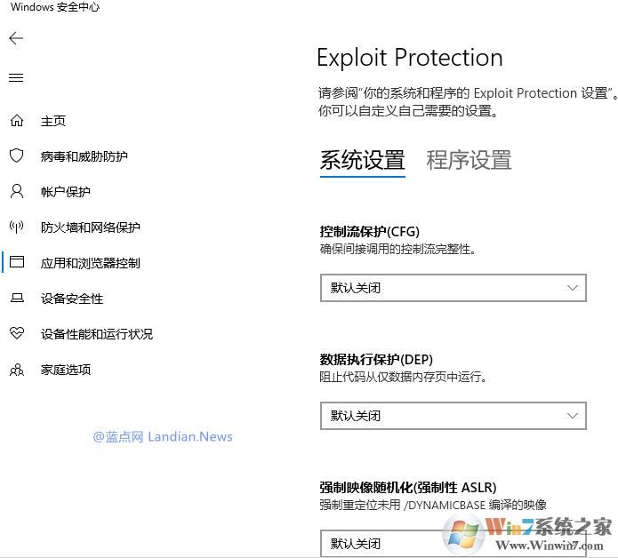 可以在Windows Defender-應(yīng)用和瀏覽器控制-Exploit Protection設(shè)置中手動(dòng)關(guān)閉全部選項(xiàng)。