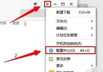 2、網(wǎng)絡(luò)沒有問題的話,我們還可以嘗試一下打開迅雷軟件,然后在軟件界面上方找到有一個向下的箭頭,點擊一下,然后選擇配置中心。