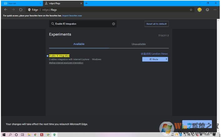而更新頻率比金絲雀慢些的開發(fā)版本倒是可以使用的,edge://flags/edge-internet-explporer-integration