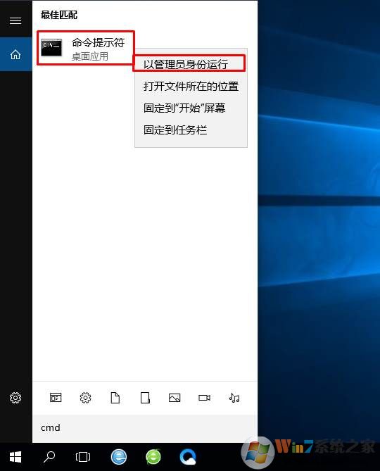 1、首先在任務(wù)欄搜索CMD,然后右鍵管理員身份運行;