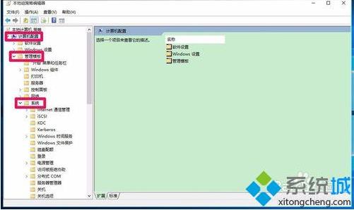 2、在打開的本地組策略編輯器窗口,展開:計算機配置-管理模板-系統(tǒng)。