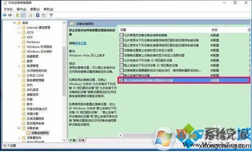 8、我們點擊應(yīng)用-確定以后,在本地組策略編輯器中,禁止安裝未由其他策略設(shè)置描述的設(shè)備選項為“未配置”,退出本地組策略編輯器。