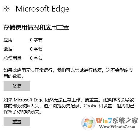3、列表中找 Edge,點(diǎn)擊高級(jí)選項(xiàng)。進(jìn)入高級(jí)選項(xiàng)之后請(qǐng)嘗試重置瀏覽器,如圖所示: