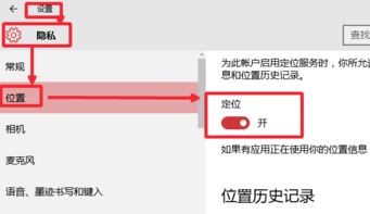 2、設(shè)置-隱私-位置,依次打開,然后右邊這里開啟定位功能,如圖所示,然后我們確保這里的天氣,定位開關(guān)是打開狀態(tài),可以使用我們的位置信息。