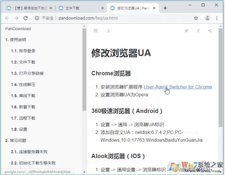 - 安裝瀏覽器擴展程序 User-Agent Switcher for Chrome