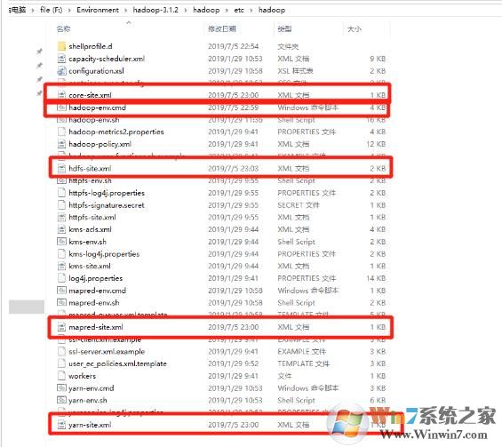 1、需要修改的文件在解壓后的目錄下,F(xiàn):\Environment\hadoop-3.1.2\hadoop\etc\hadoop