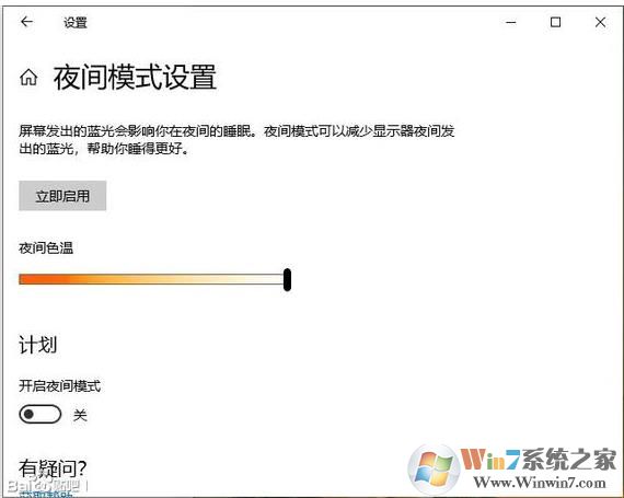 1、打開Win10系統(tǒng)的顯示設(shè)置,然后點(diǎn)擊夜間模式