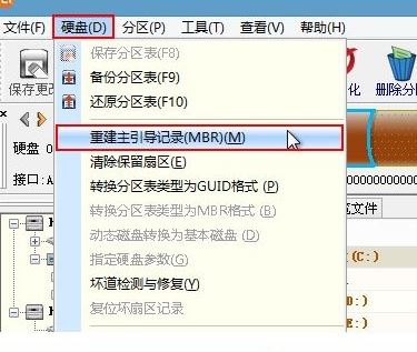 4、打開(kāi)DG軟件后點(diǎn)擊“硬盤(pán)”-“重建主引導(dǎo)記錄(MBR)”選項(xiàng),在彈出的提示窗口中選擇“是”,如圖: