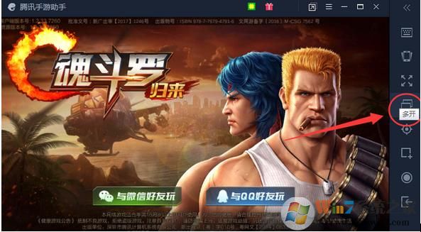 2、運(yùn)行游戲后會彈出一個騰訊手游助手游戲窗口,在這個窗口右側(cè)的功能列表中就可以看到“多開”的功能了。