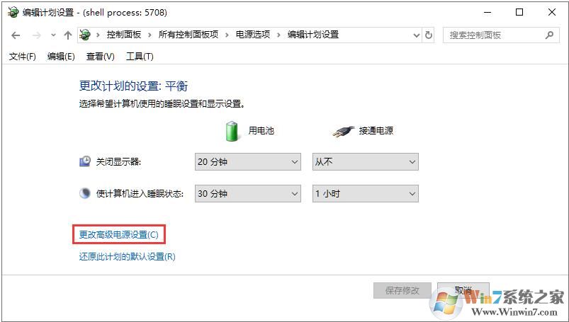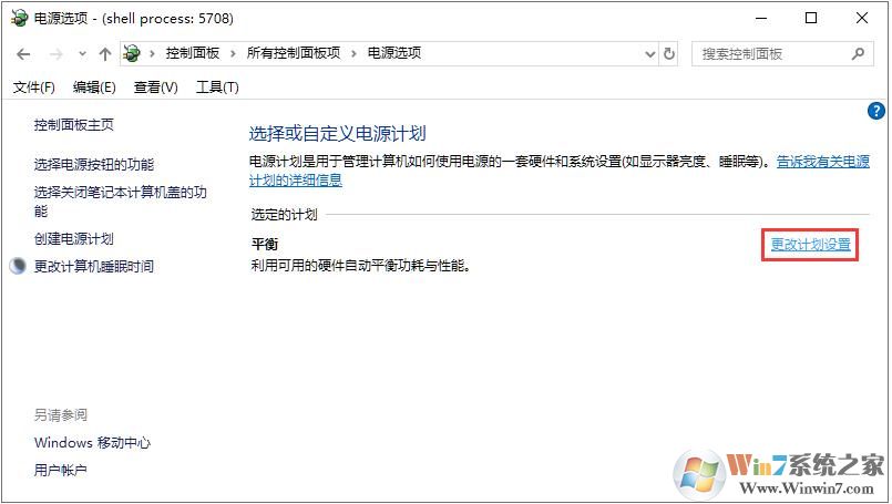 2. 點擊當前電源計劃的“更改計劃設(shè)置”;