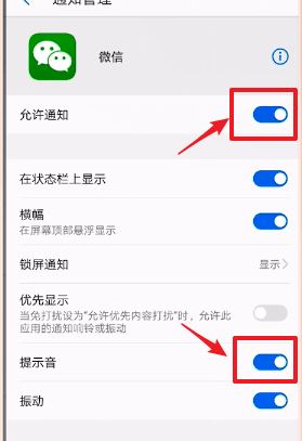 7、將【允許通知】和【提示音】等開關(guān)打開;