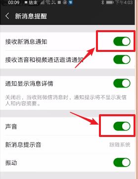 4、將【新消息通知】和【聲音】這兩個(gè)開關(guān)打開即可。