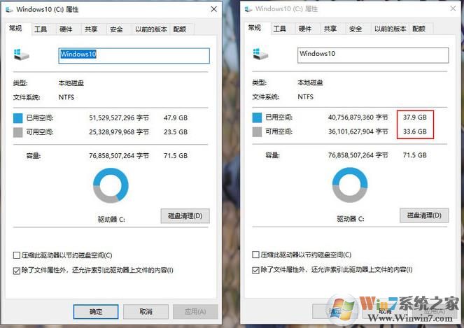 禁用休眠前后C盤空間變化(左:禁用前 右:禁用后)