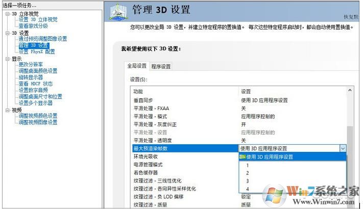 這項功能能夠明顯提升游戲性能,尤其當硬件相對于游戲偏低時更加明顯。除此之外,“3D設置→管理3D設置→全局設置”里的“最大預渲染幀數(shù)”也有類似的效果,根據(jù)實際情況調(diào)整即可。