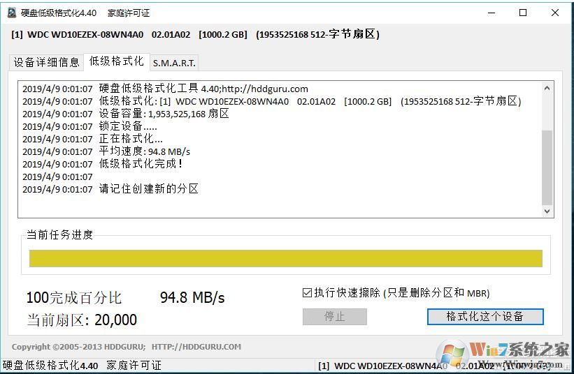 還有需要注意的是低級格式化將完全刪除你的數(shù)據(jù),并且任何工具都無法恢復(fù)。