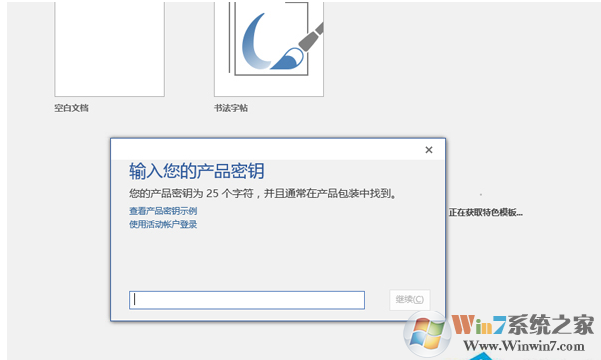4、打開Office的某個應(yīng)用,這時它會提示我們輸入你的產(chǎn)品密鑰,直接關(guān)閉這個窗口,在接下來的彈出窗口中點擊【接受】,這時,我們的Office就完成了激活工作。