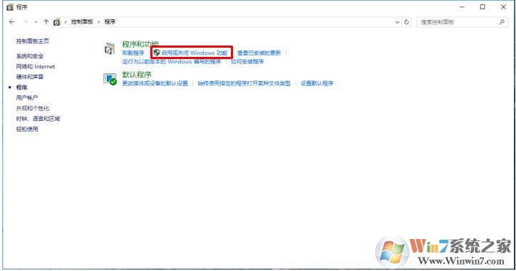 2、單擊進(jìn)入,找到程序和功能中的啟用或關(guān)閉windows功能