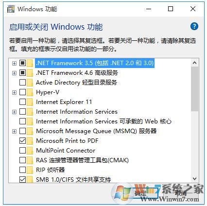 3、進(jìn)入后可以發(fā)現(xiàn)以下界面點(diǎn)擊勾選第一個(gè)即.NET Framework3.5(包括.NET2.0和.NET3.0),單擊確定,