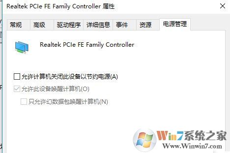 4、打開網(wǎng)卡屬性后,我們切換到【電源管理】一欄,如下圖所示: