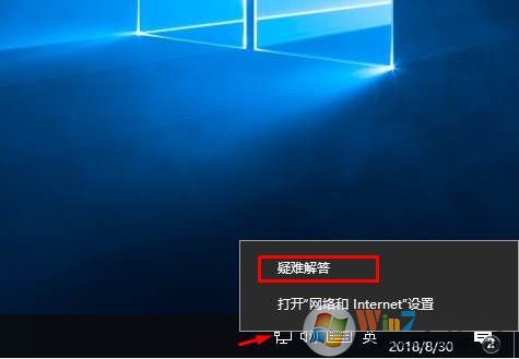 1、當(dāng)出現(xiàn)網(wǎng)絡(luò)問題的時候,我們可以右鍵點擊右下角的“網(wǎng)絡(luò)”圖標,然后選擇【疑難解答】;