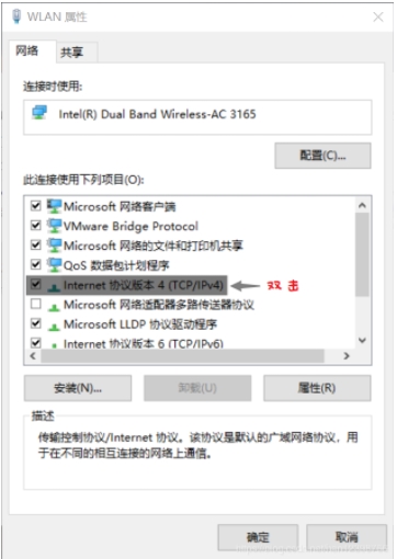 3、在網(wǎng)絡(luò)屬性窗口中雙擊 “Internet 協(xié)議版本4 (TCP / IPv4)”。