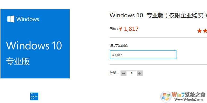 Windows10專業(yè)版價格:1799元 不知道為什么漲價了哈。