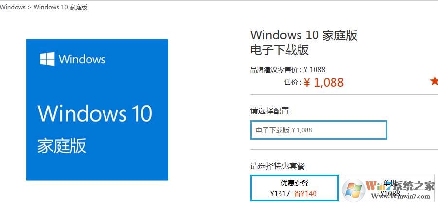 Windows10家庭版官方價格:1088元,之前小編看到是888元