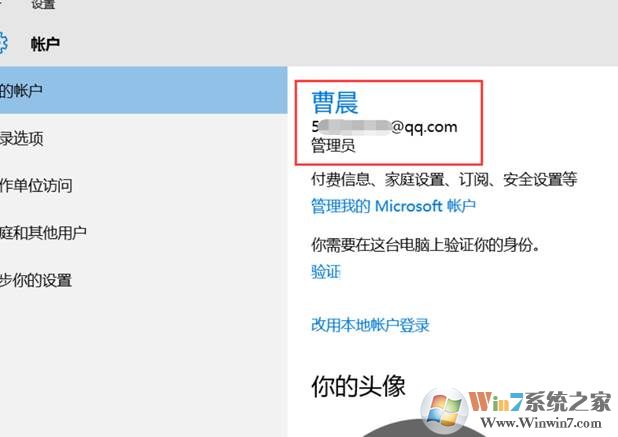 2、 在彈出的設(shè)置頁面中選擇“你的賬戶”——單擊“改用Microsoft賬戶登錄”,如圖: