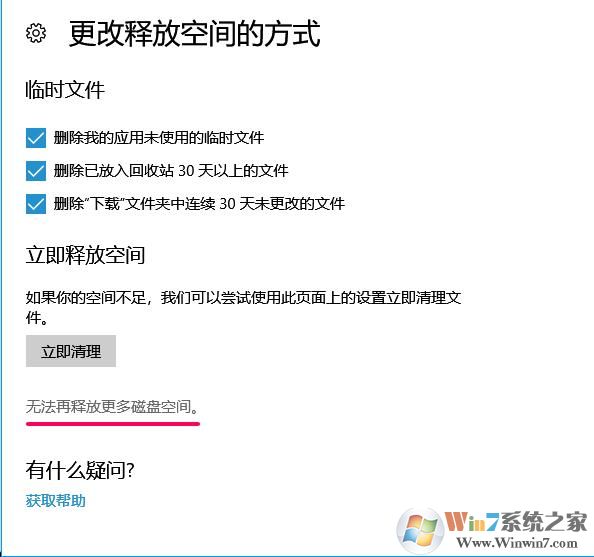 6、完成后再點擊“立即清理”會提示“無法再釋放更多磁盤空間”