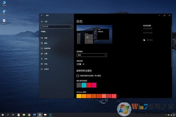 通過“設(shè)置”→“個性化”→“顏色”→“深色”,即可切換到“暗黑模式”。