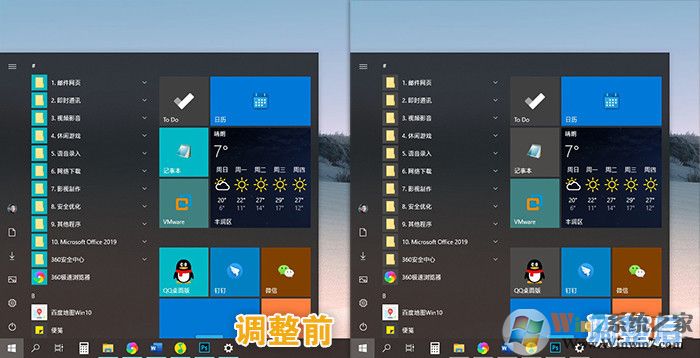 Win10的暗黑主題會修改開始菜單,但不會對圖標背景做調(diào)整,因此常常會呈現(xiàn)出一種菜單深色、圖標亮色的怪異效果!