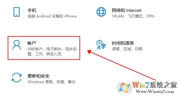 第二步:在設(shè)置中心中——點(diǎn)擊賬戶。