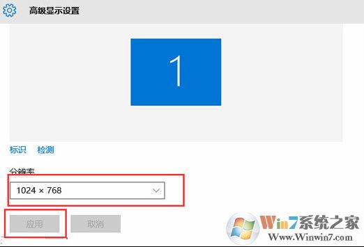 3、點擊進(jìn)入之后,在打開的窗口里面看到下圖中所示的窗口,在下面的位就有一個分辨率選項,直接可以在這里設(shè)置想要的分辨率,然后點擊應(yīng)用就完成了。