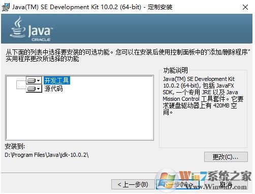 2、點擊下一步,點擊更改選擇安裝目錄,我選擇的是:D:\Program Files\Java\jdk-10.0.2\