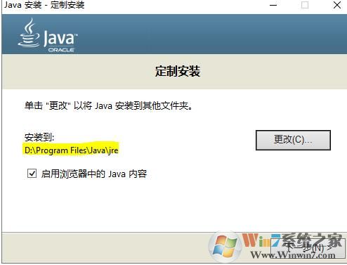 5、安裝好JDK后,跳出JRE的安裝界面,點擊更改,選擇新建的jre目錄,將jre和jdk安裝在同一目錄下: