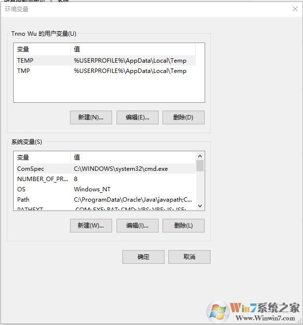 3、點擊下面的“環(huán)境變量”選項后如下圖所示: