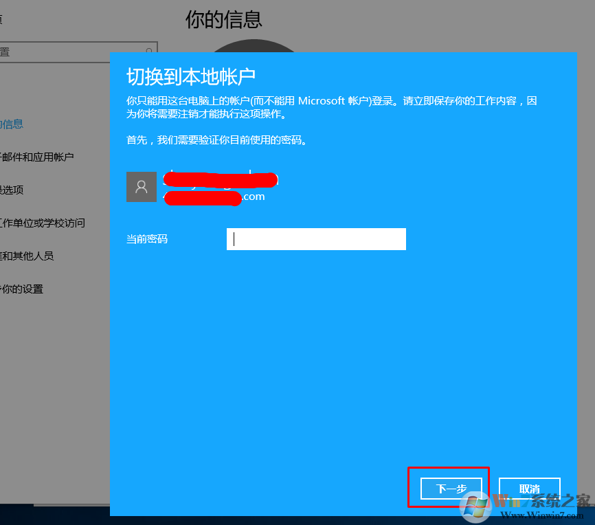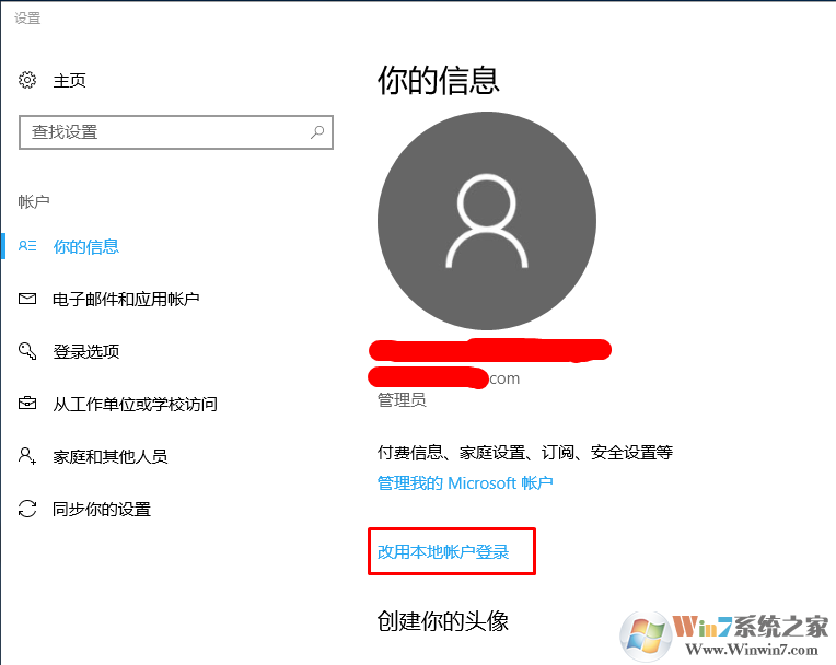 2、選擇改為b本地賬戶登陸,如果是用Microsoft賬戶登陸的話是無法取消的。