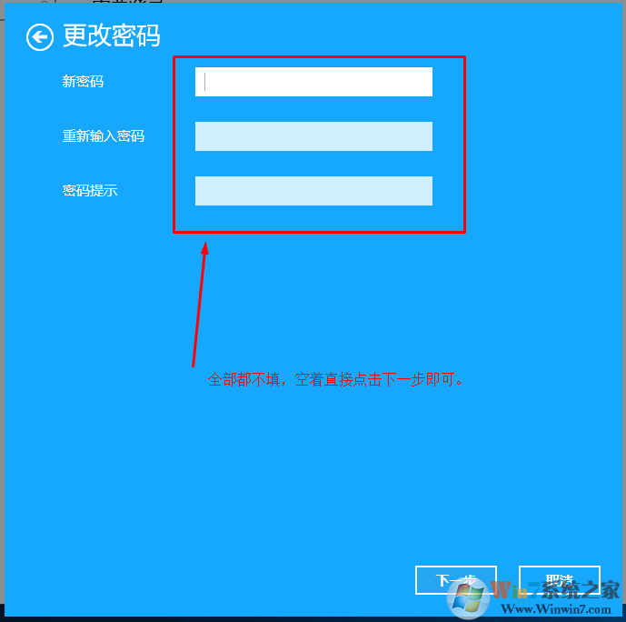 6、在輸入新密碼的時候不要輸入,直接空白點擊下一步。
