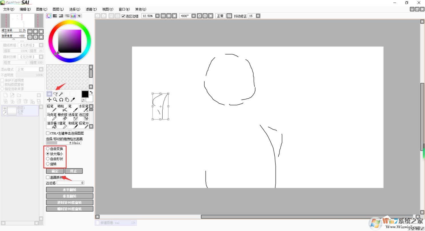6、選擇選擇工具可進(jìn)行旋轉(zhuǎn)放縮等操作,修改后點(diǎn)確定。