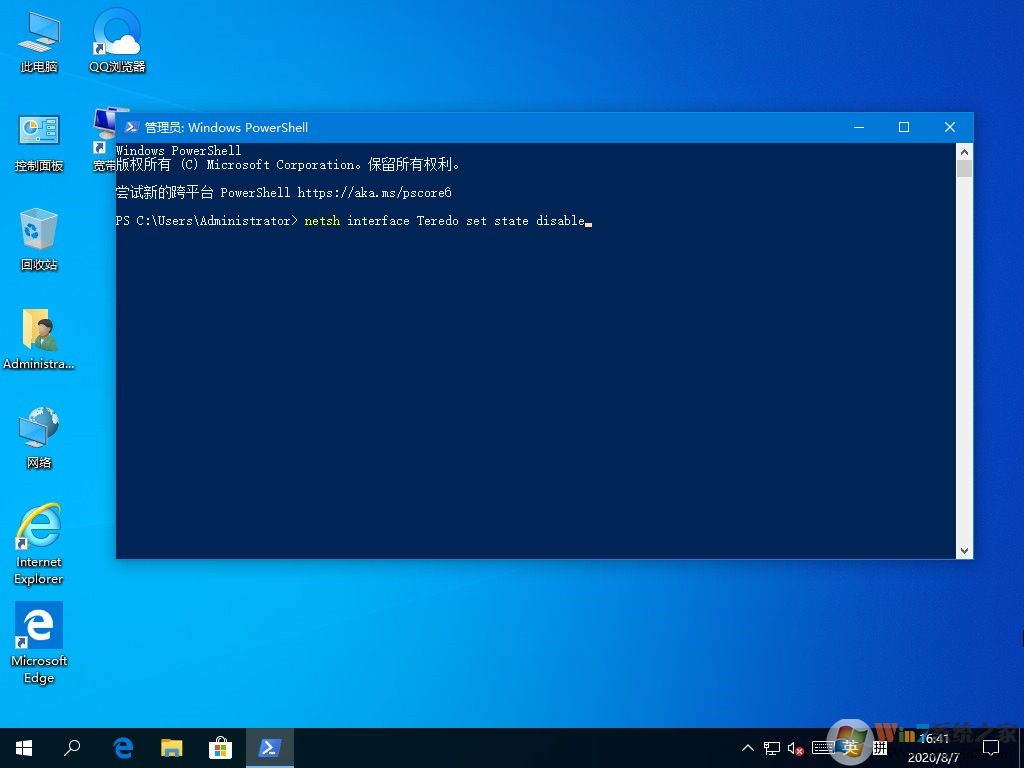 1)“netsh interface Teredo set state disable”回車;
