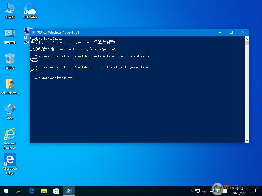 2)“netsh int ter set state enterpriseclient”回車: