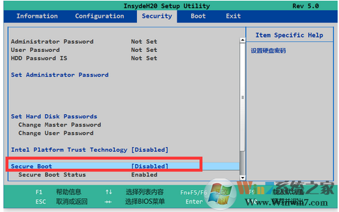 開機(jī)的時(shí)候快速點(diǎn)擊F2或者是FN+F2的,進(jìn)入BIOS找到Security下的Secure Boot選項(xiàng),修改為Disabled后按F10(或者fn+f10)選擇yes,重啟,即可進(jìn)入游戲