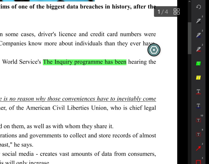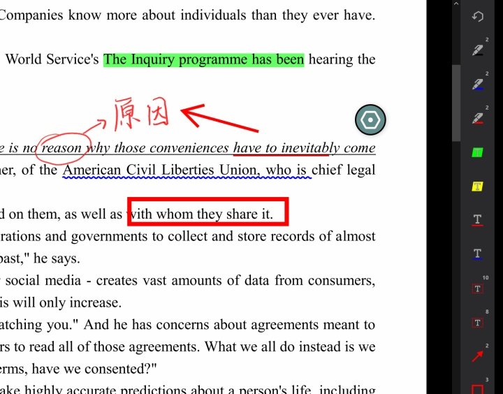 接下來是書寫,點(diǎn)擊工具,選擇觸控筆,設(shè)定粗細(xì)之后,可以直接在pdf上書寫標(biāo)記,實(shí)際書寫感受非常接近于真實(shí)的筆,很流暢。
