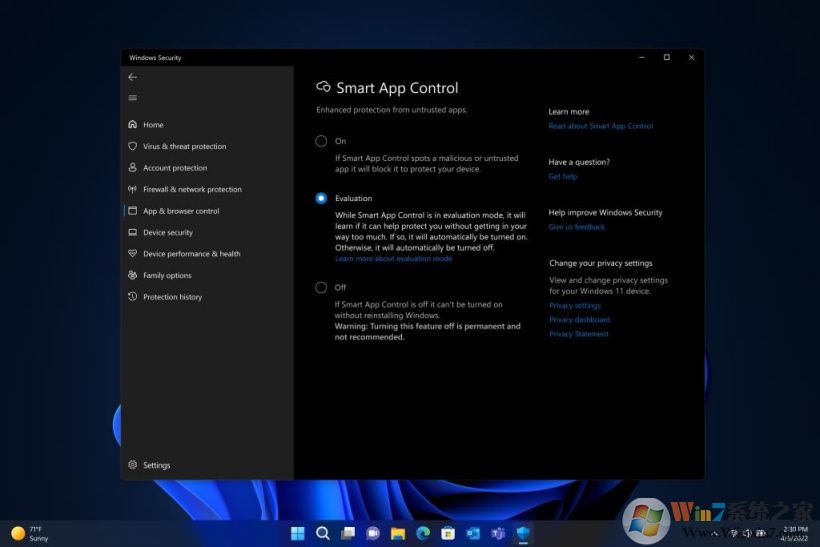 ▲ Windows 11 中的智能應用控制