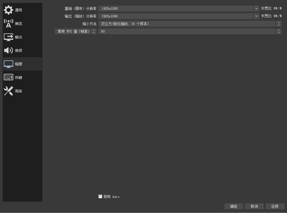 在 設置— 輸出 — 錄像 中,我們可以設置分辨率、視頻格式等。