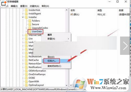 5、我們來對(duì)UserData項(xiàng) 的權(quán)限進(jìn)行設(shè)置,在右鍵菜單中點(diǎn)擊 權(quán)限 ;